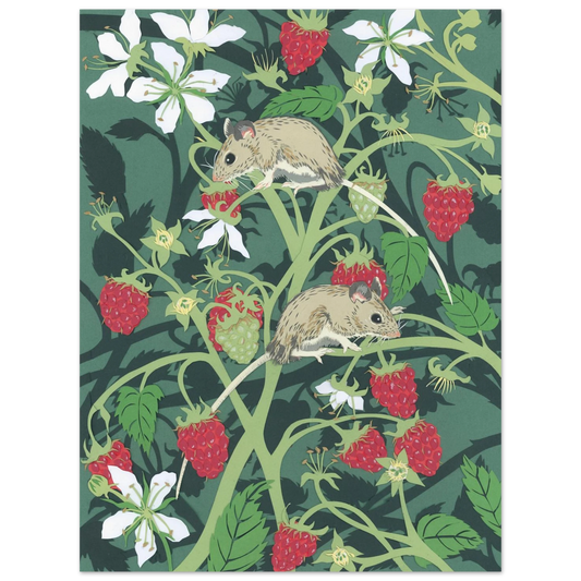 Wood Mice with Raspberries Art Poster