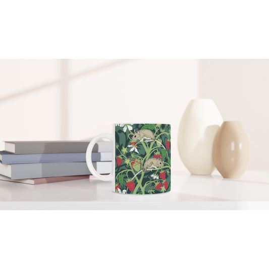 Wood Mice with Raspberries 11oz Ceramic Mug Ceramic White