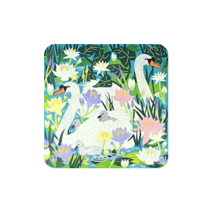 A set of 4 coasters with Fiona Scott-Wilson's Cygnet's First Swim cut-paper design. Coasters are 9.5mm with vibrant colour and a cork base.