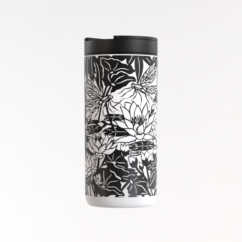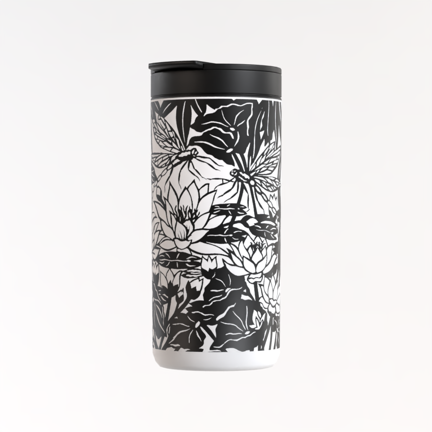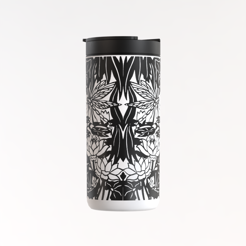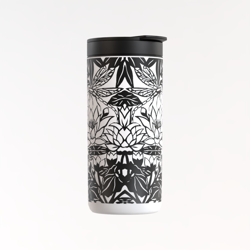 Dragonflies is a hand cut-paper art work by Fiona Scott-Wilson and is printed on this Large Coffee Thermos Flask - the perfect companion for coffee lovers on the go.