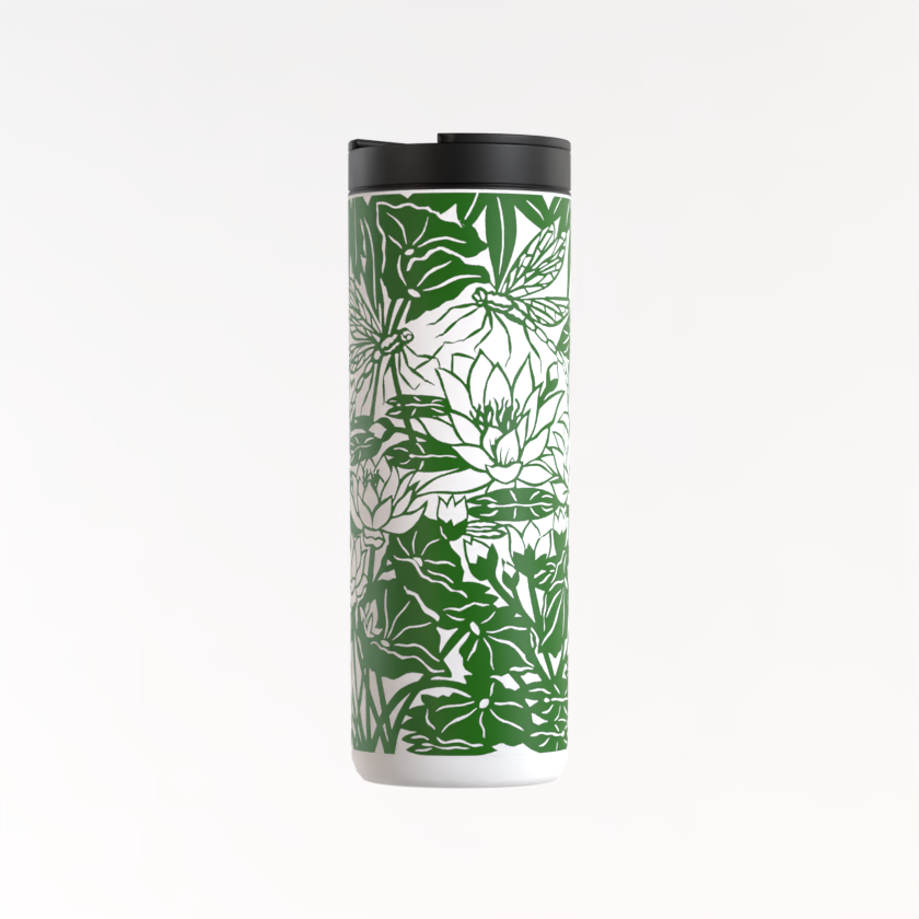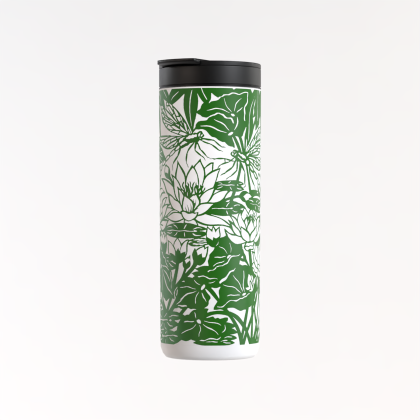 Dragonflies is a hand cut-paper art work by Fiona Scott-Wilson and is printed on this Large Coffee Thermos Flask - the perfect companion for coffee lovers on the go.