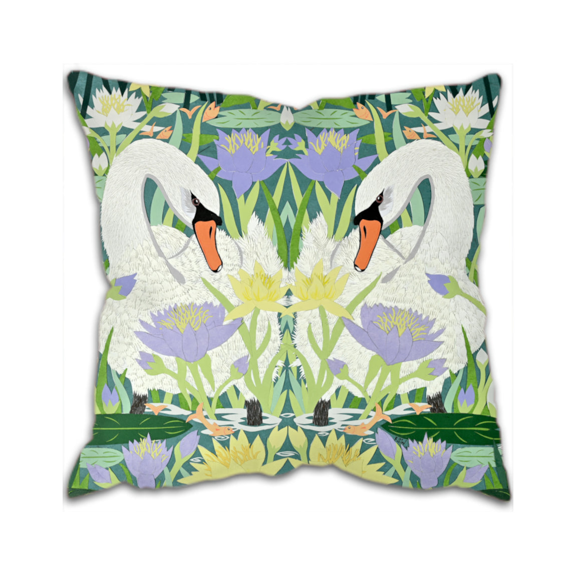 A large, double-sided cushion featuring Fiona Scott-Wilson’s original hand-cut paper art.