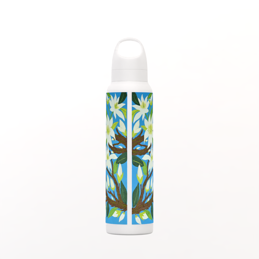 Song Thrush in Magnolias is a hand cut-paper art work by Fiona Scott-Wilson. We have printed this on this Akaw insulated, stainless steel bottle.