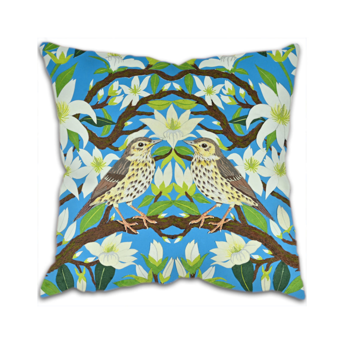 A large, double-sided cushion featuring Fiona Scott-Wilson’s original hand-cut paper art.
