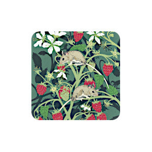 A set of 4 coasters with Fiona Scott-Wilson's Wood Mice with Raspberries cut-paper design. Coasters are 9.5mm with vibrant colour and a cork base.
